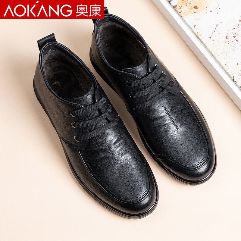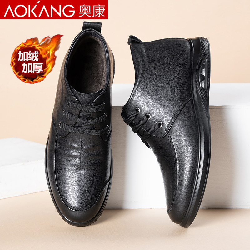 Okom Men Leather Shoes Winter Cotton Shoes Man Gvet Warm Soft Bottom Air Cushion Genuine Leather Casual Dad Shoes Cotton Leather Shoes