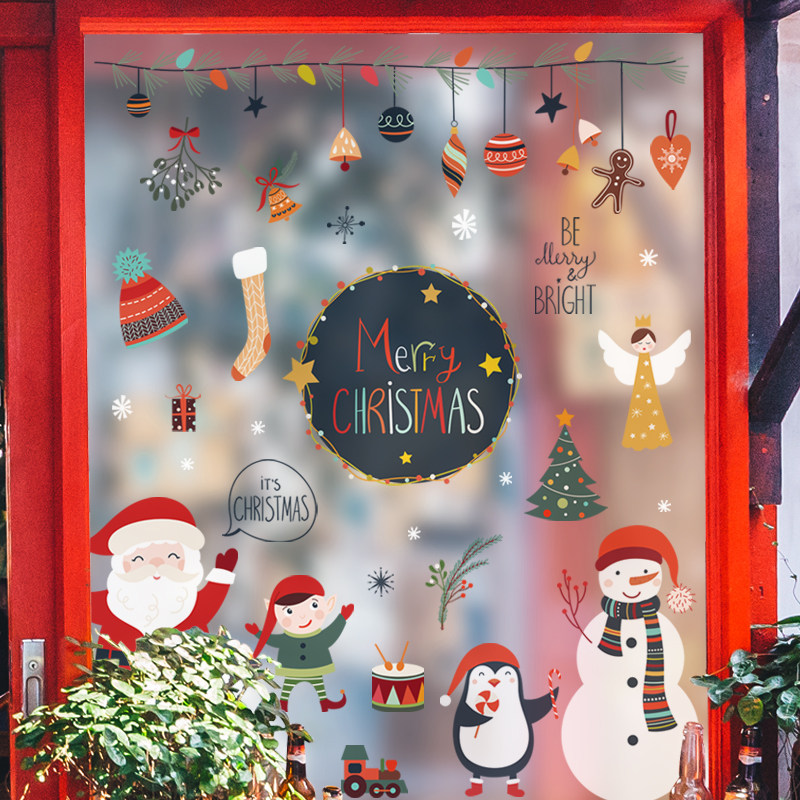 New Year and Christmas decorative wall stickers double-sided waterproof glass window shopping mall storefront holiday layout classroom - Taobao