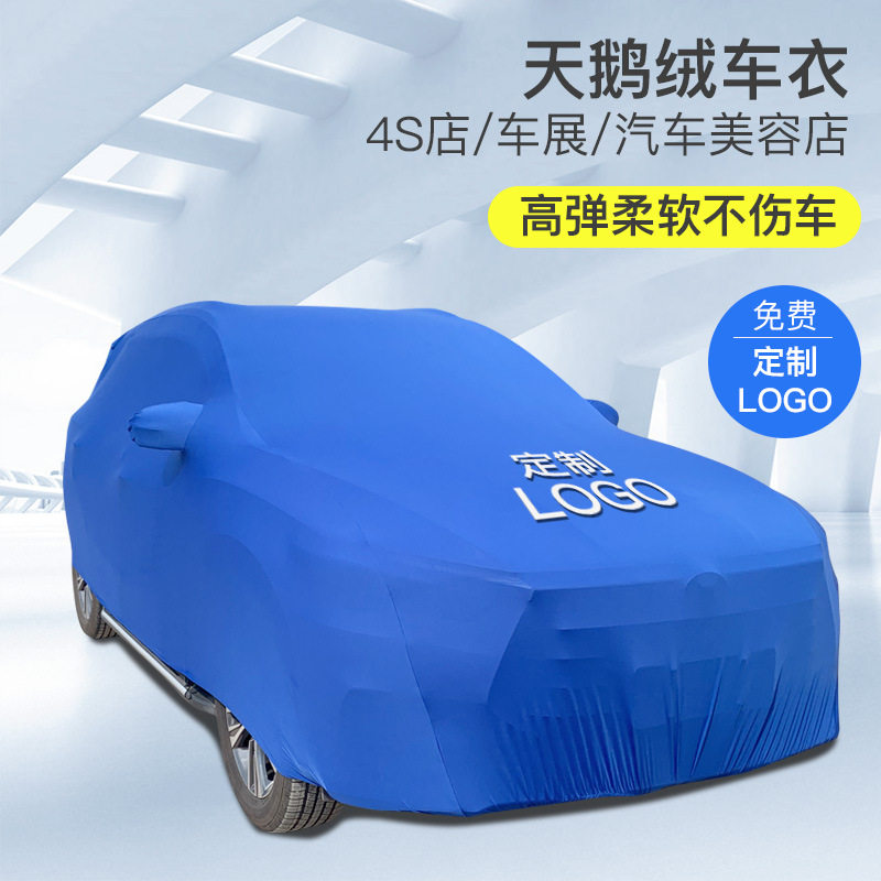 Custom Car Hood Hood Car Exhibition Beauty Shop Complete Car Hood Turnkey Hood Velvet Spring Force Cloth Anti-Dust Sunscreen Garage Car Cover