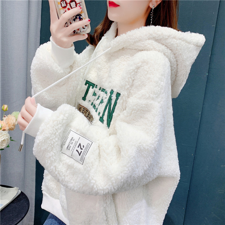 Tide lamb plus plus hat jacket woman 2022 autumn and winter new loose embroidery design tops