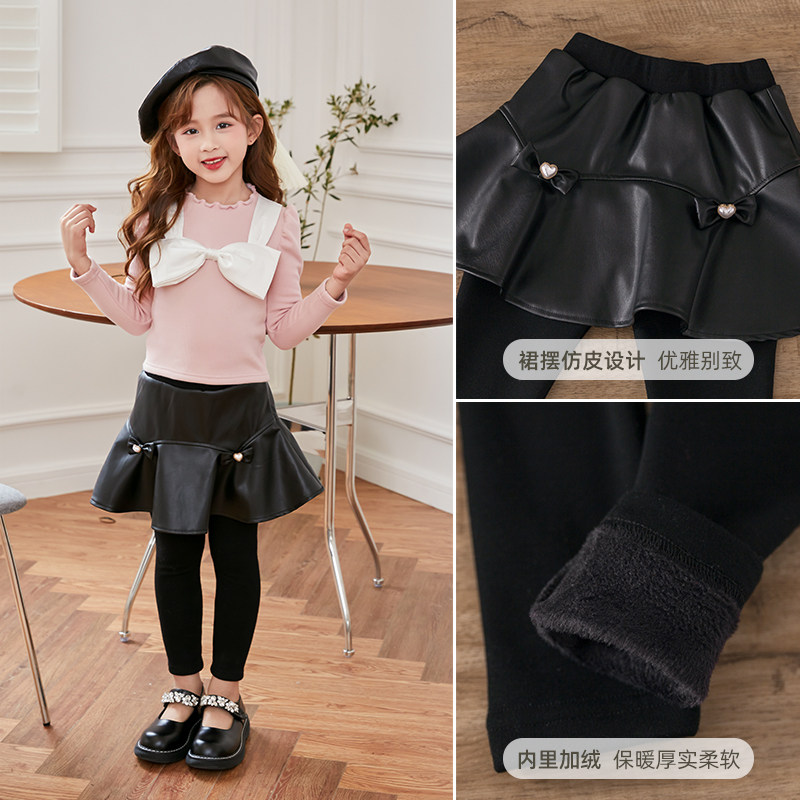 The rat black fake two pieces of pants girl 2021 new autumn and winter fashion pants plus thicker skirts