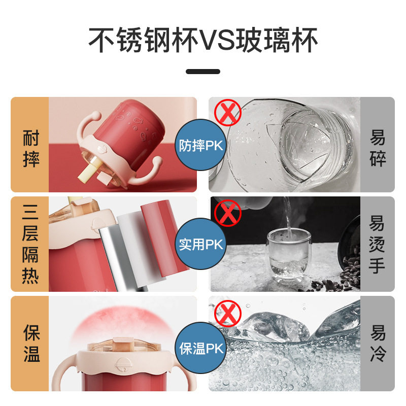 Naughty baby children's milk cup with scale baby breakfast milk bubble milk drinking cup stainless steel straw cup