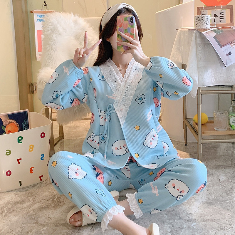 Air cotton confinement clothes winter postpartum December pure cotton breastfeeding pregnant women pajamas women's spring, autumn and winter thickening