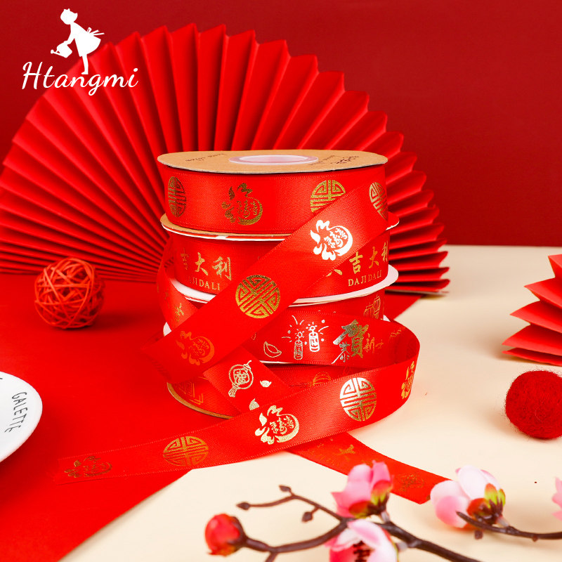 New Year red ribbon colored with 2 5cm upscale bronzed satin ribbon diy butterfly knot Decorative Gift Strap
