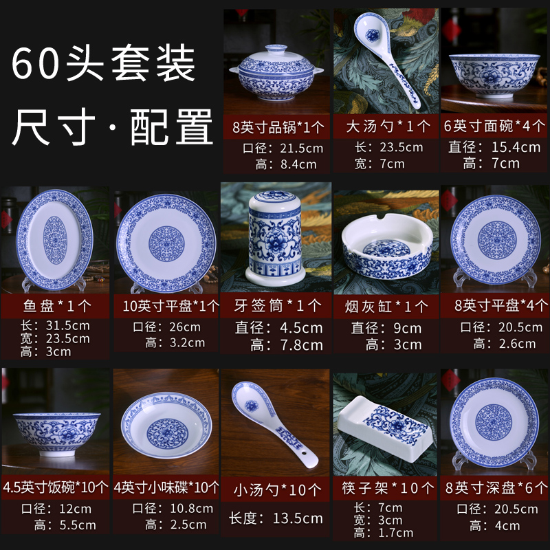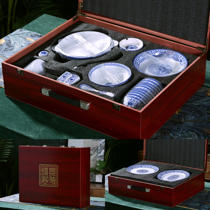 Jingdezhen Qinghua Porcelain Tableware Set Group Chinese Home ceramic dishes Disc Spoon Upscale Gift box Dress Joe Accommodate