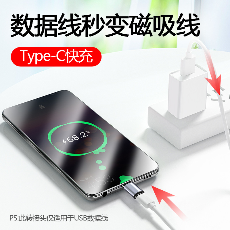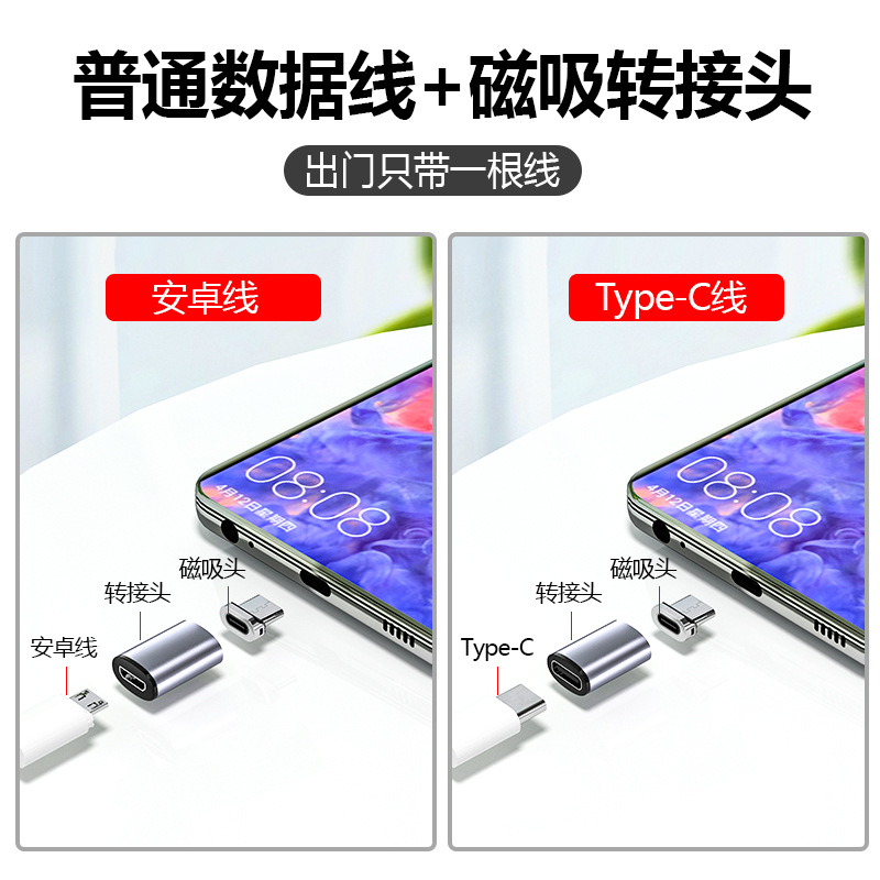 Magnetic suction adapter 3A fast charging strong magnetic magnet magnetic head type suitable for apple c Android micro Huawei typec data cable mobile phone tablet universal charging cable head millet oppo