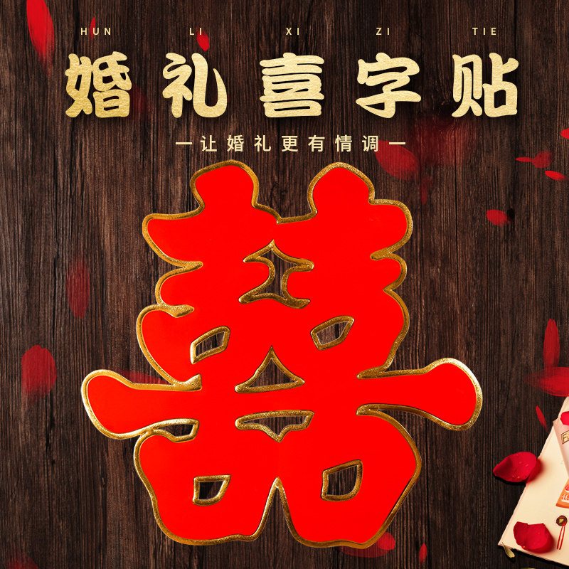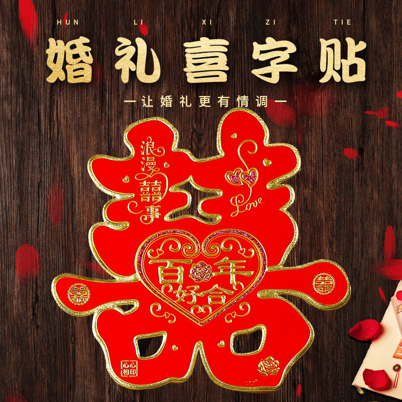 Double-layer three-dimensional wedding happy word stickers door stickers wedding room layout decoration flocking happy word stickers door stickers window stickers