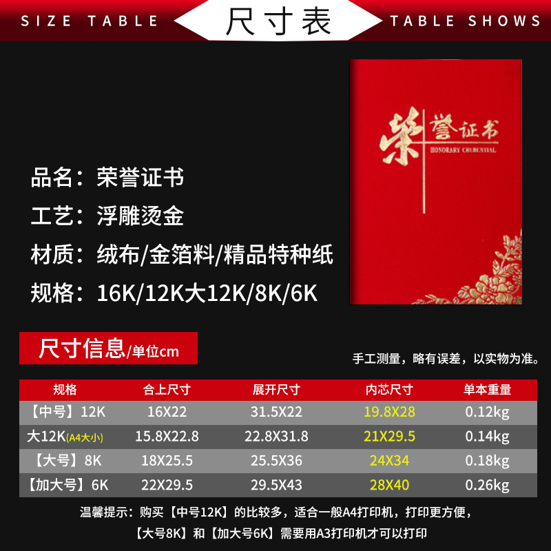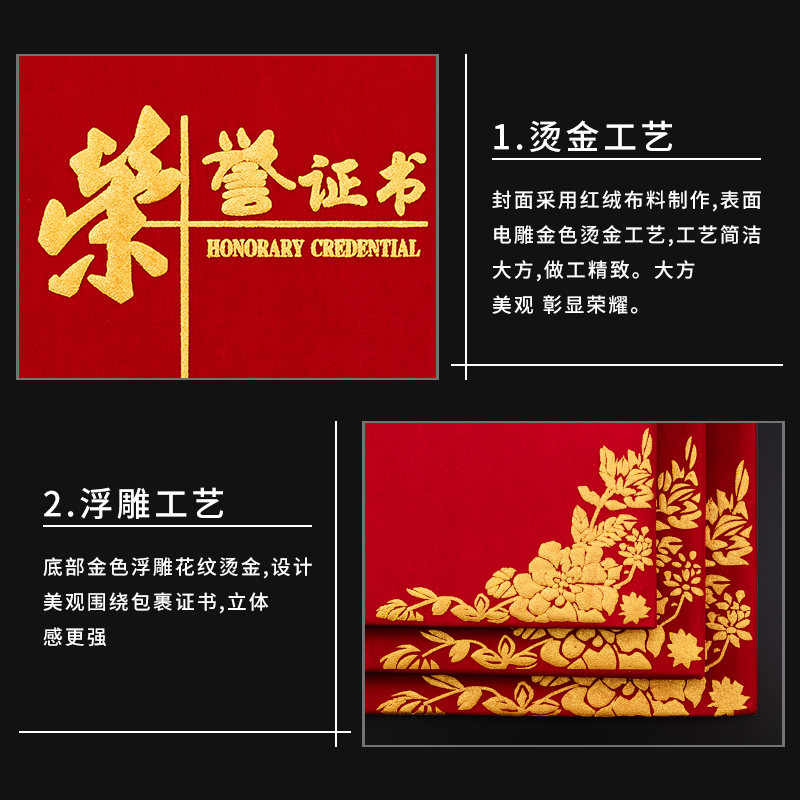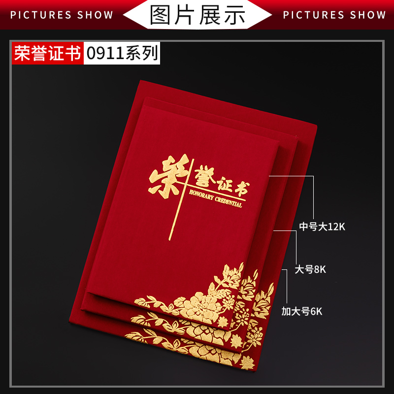 Honor certificate cover red suede crust set to make inner page inner core printable upscale cover tie-up certificate letter of appointment Bronze-winning award-winning excellent employee a4 Awards Wholesale wholesale 12K