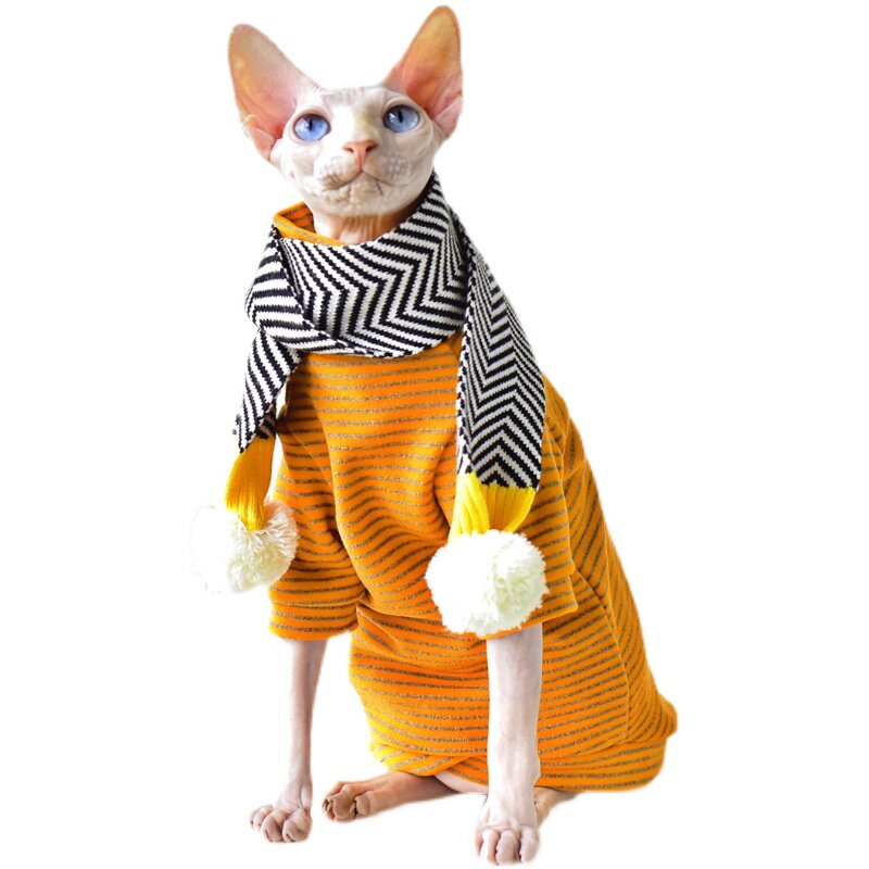 YH-Fever Fabric Duvet Striped High Collar Undershirt Winter Thickening of Wing Wo Sfinks No Mao Cats