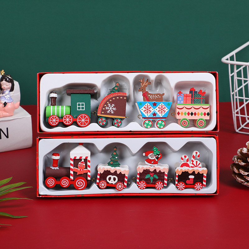 Christmas decorations wood-painted small fire cars Children's kindergarten Christmas Day Gift Shop Windows Atmosphere Pendulum