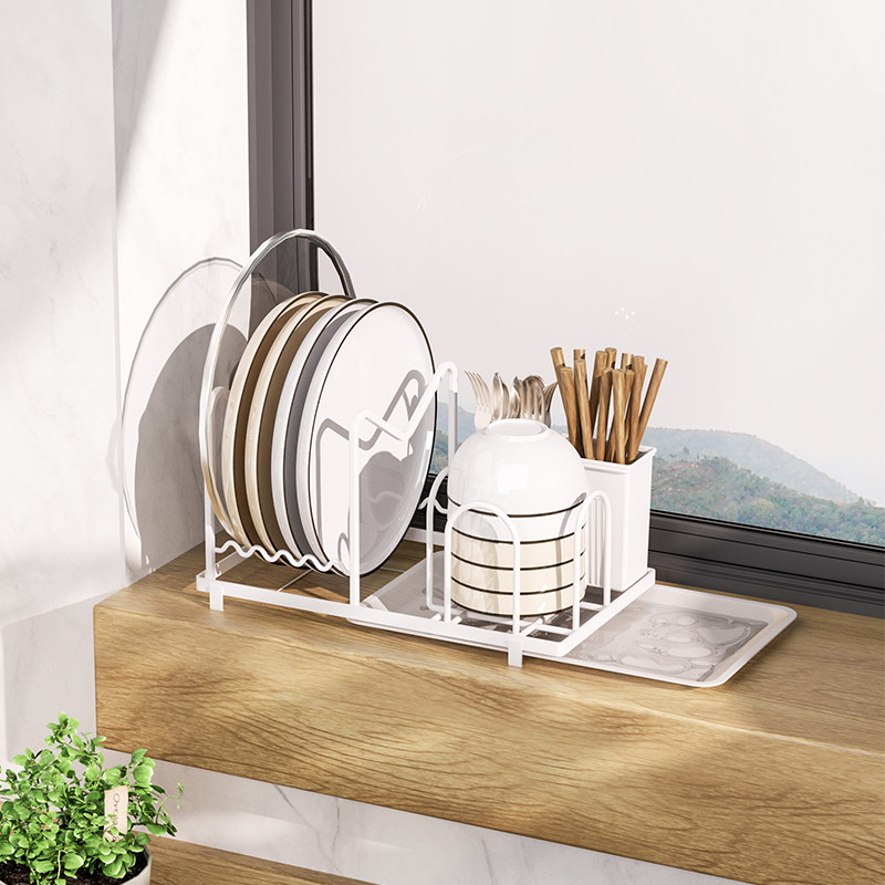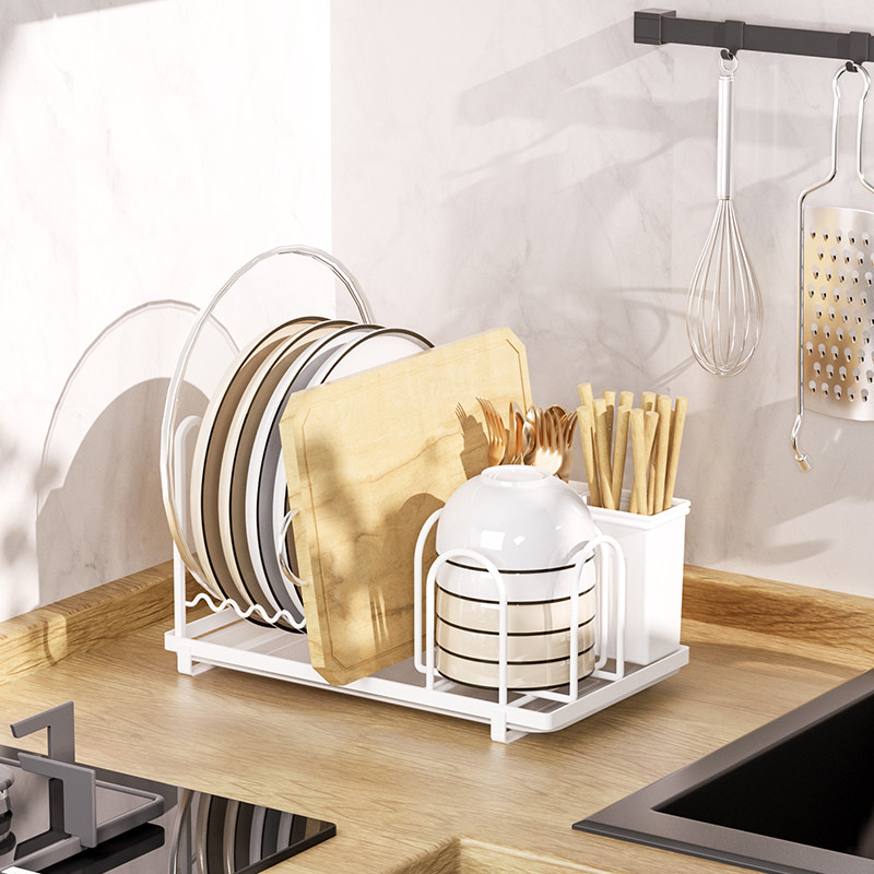 Kitchen Small Monolayer Dish Chopsticks containing drain Shelf White Small Number of Bowls Chopsticks Drain shelf Cupboard Contained