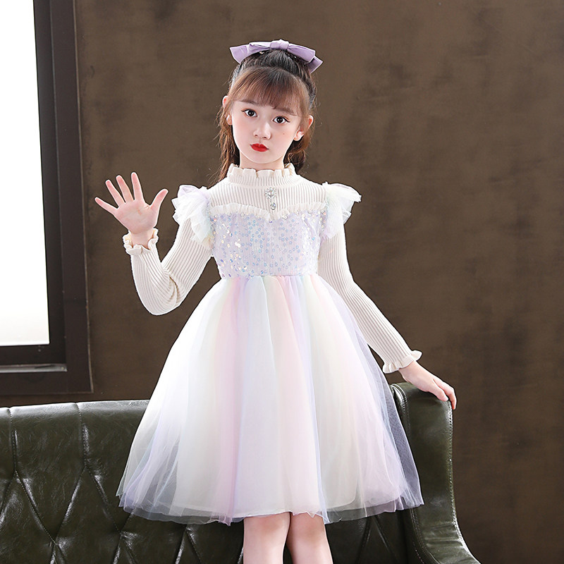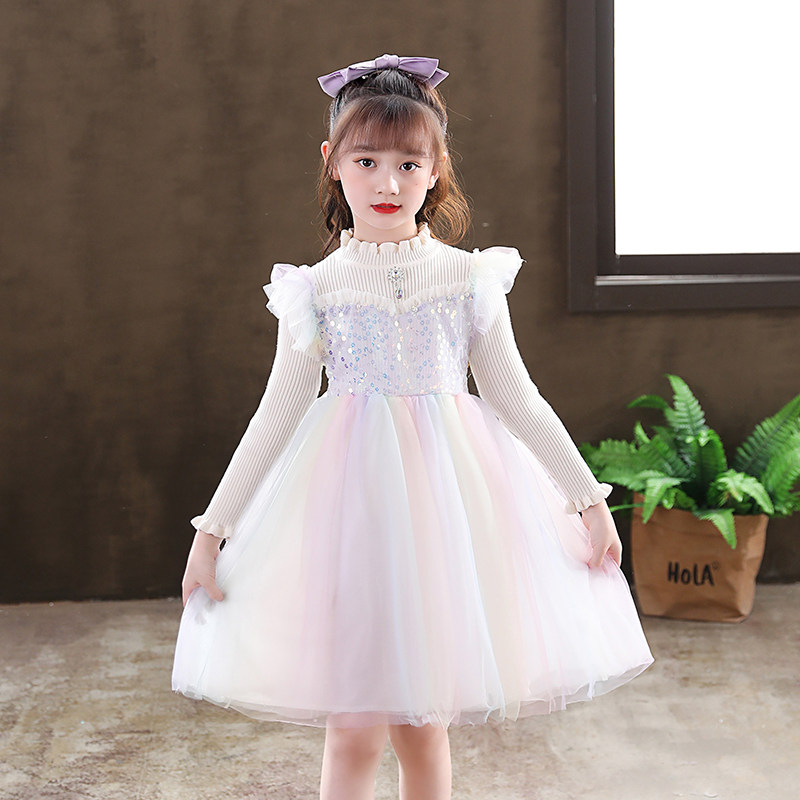 Girl's Spring and Autumn Princess Love Tha Princess Dresses 2022 New Foreign Pie Little Girl Sweaters Dress Children Spring Dress