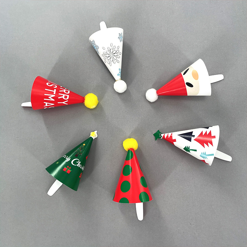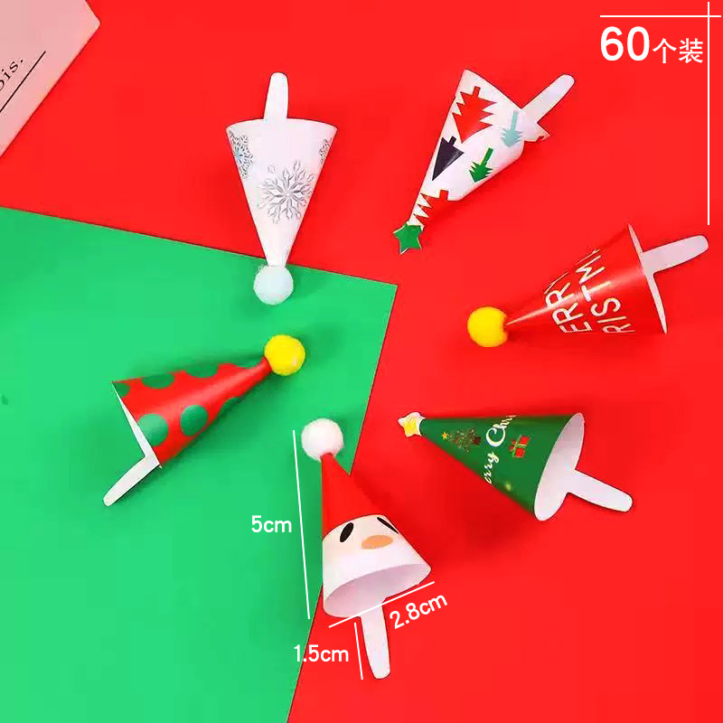 Mini bear polka dot hat plug-in pom-pom hat paper cup birthday hat card insert mini christmas hat cake decoration