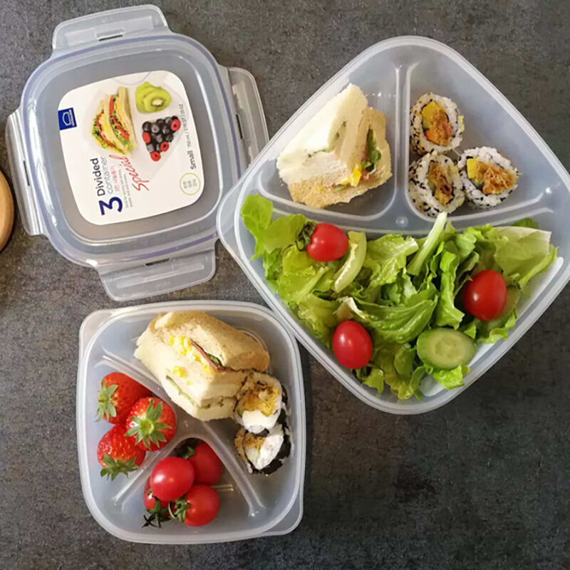 Music Buckle Music Buckle Plastic Refreshing cartridge lid three-separated 750ml square lunch box light refreshment spring treadling