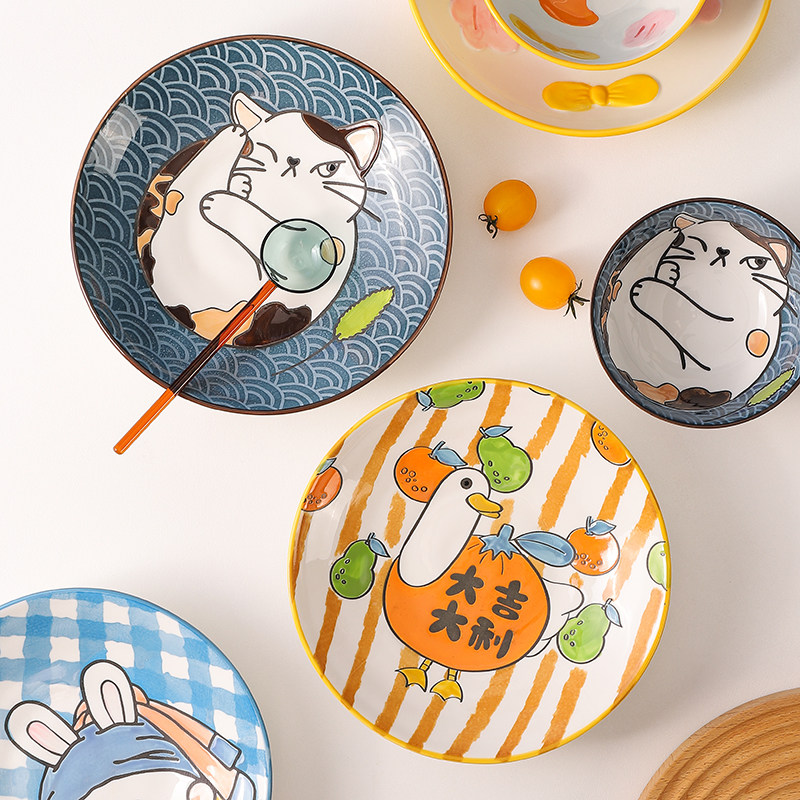 Cartoon Dishes Dishes Home Cute Wind Especially Good Looking Rice Bowls Creative Personality Dishes Cutlery Ceramic Suits