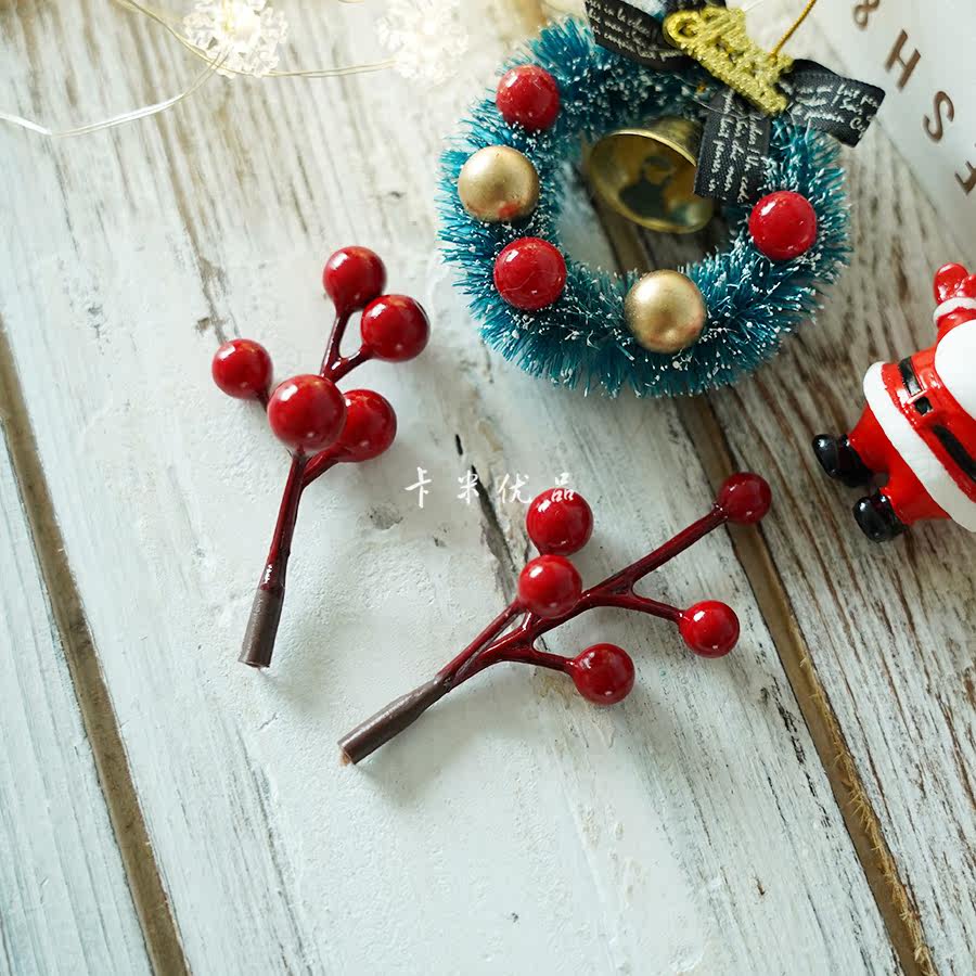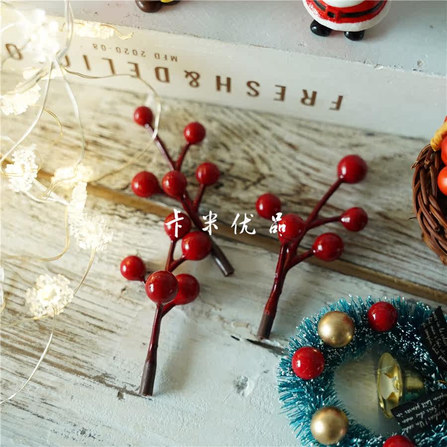 Christmas Small Red Fruits Simulation Flowers Vines 5 Forks Small Red Fruits Jerks Christmas Fruit Son Photo Props Gift Wrapping Berries