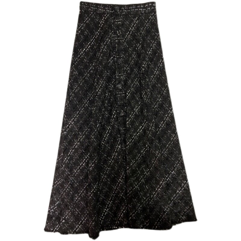 Mularsa High Waist Flow Su Black Plaid Hair Half Body Dress Woman 2021 Autumn Winter New A-word Medium Long Version Umbrella Skirt