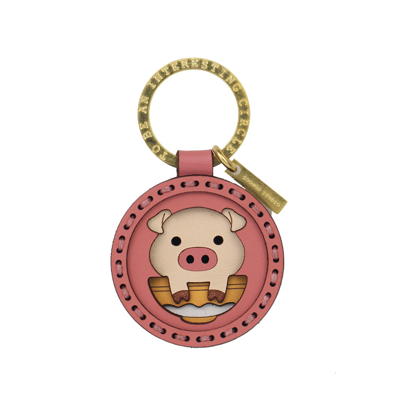 Cartoon Bull Leather Original Handmade Custom Cute Pig Pig Car Key Clasp Zodiac Pig Pendant Upscale Girl Presents