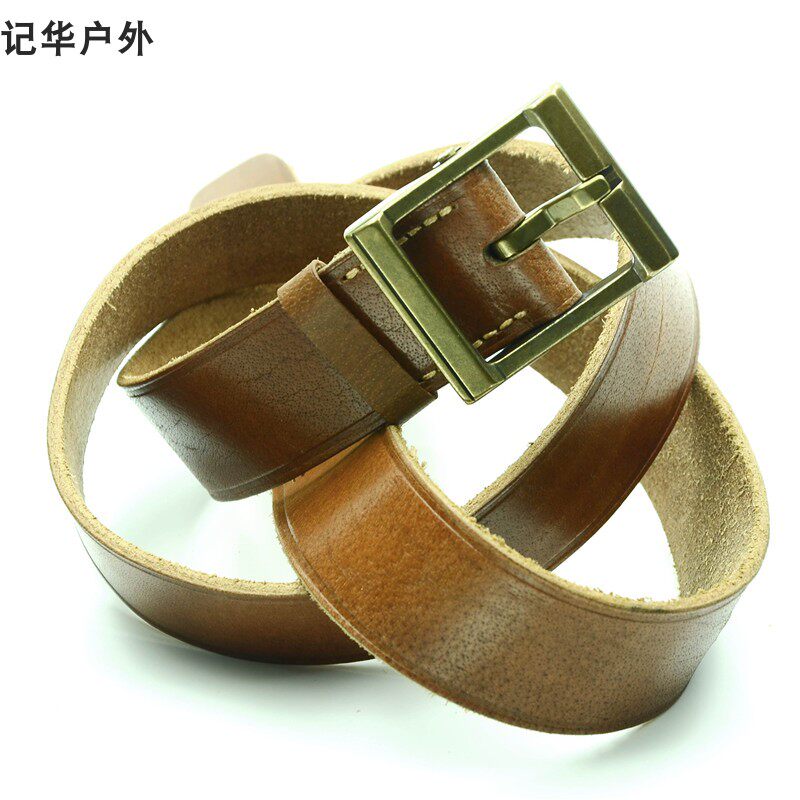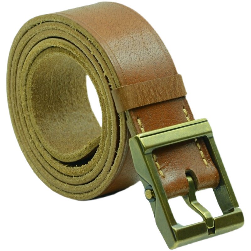 Copper buckle head layer cowbelt hand stitching leather lengthened thick coarse mine men retro Joker pants belt custom-made