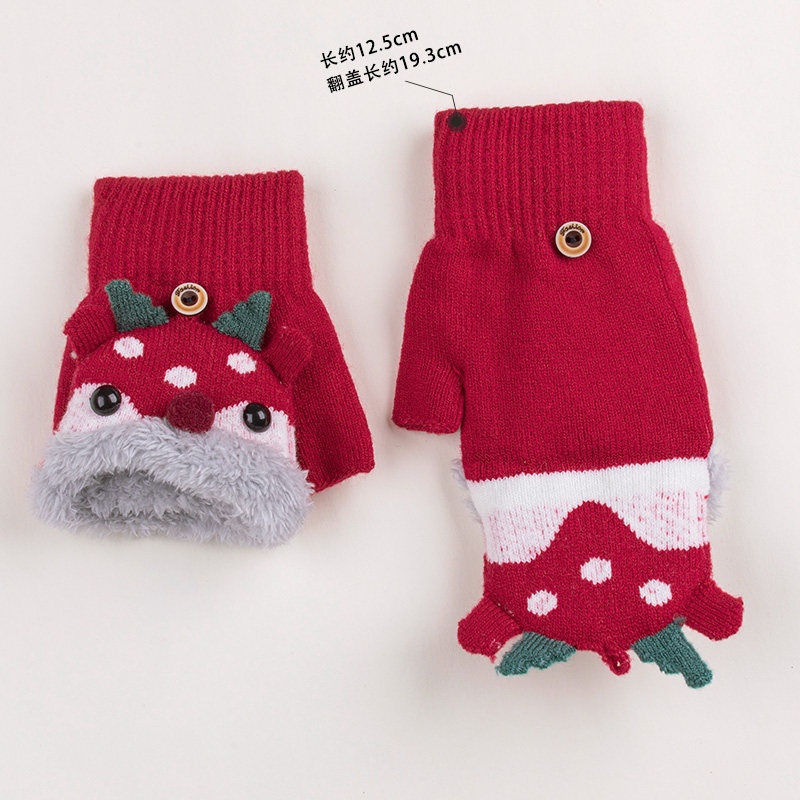 Children's gloves winter boys and girls plush warm gloves cold-proof cute half-finger flip cartoon new writing