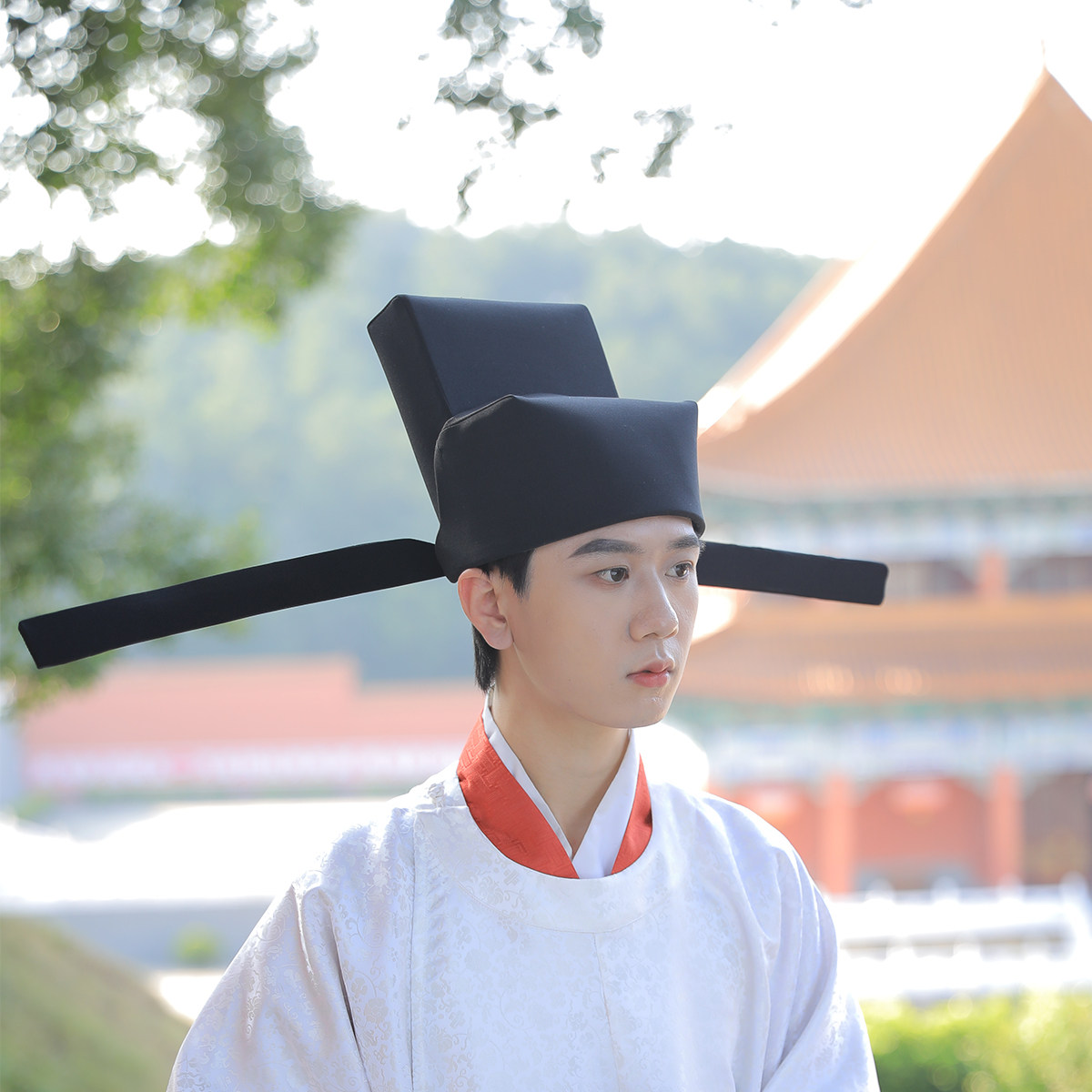 The Song Dynasty Youth Pre-spread of the Wings Hood Alley Han Fu Restored to Song Dynasty Hard Wings Crown Cap Exhibition Footed head Song Dynasty hat