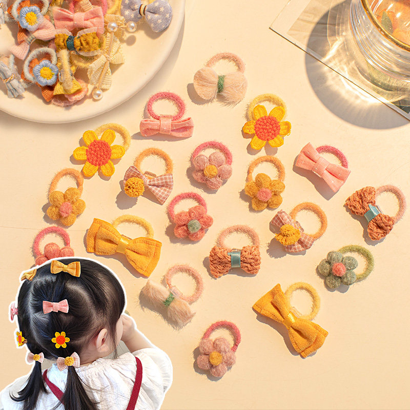16# small flower white fur ball light rabbit pearl pendant hair ring 50 piece set 8# white flower bright fluffy bow hair ring 40 piece set 3# small flower flower