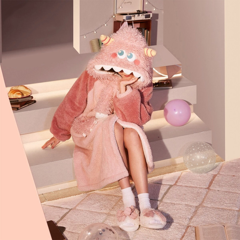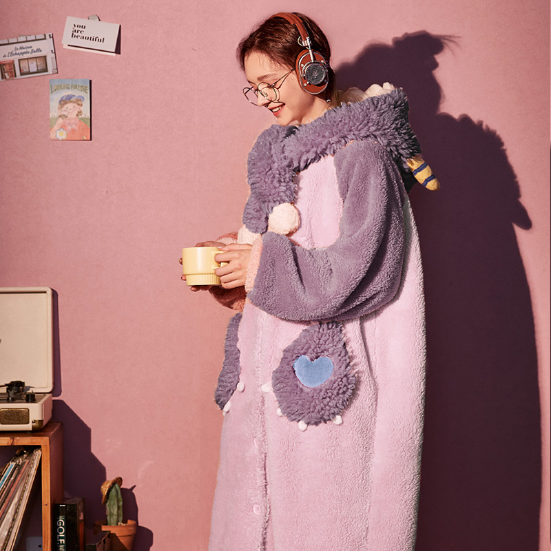 Sleepwear Women's Winter Coral Suede Dresses Winter Pyjamas Winter Pyjamas Women Sleeping Robes Women's Winter Long Version Plush Bathrobe Home Clothing Thickening