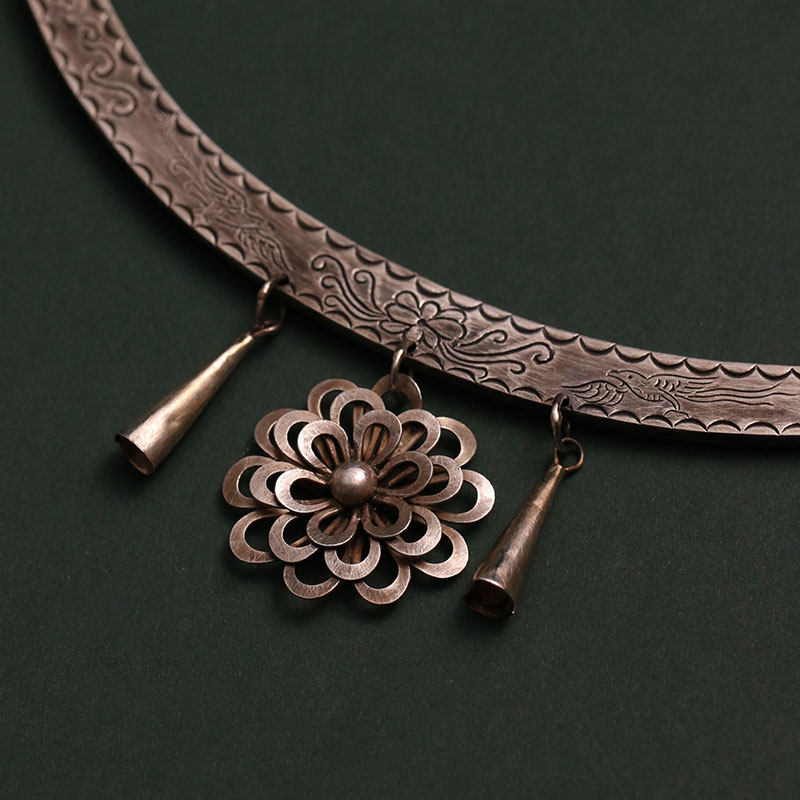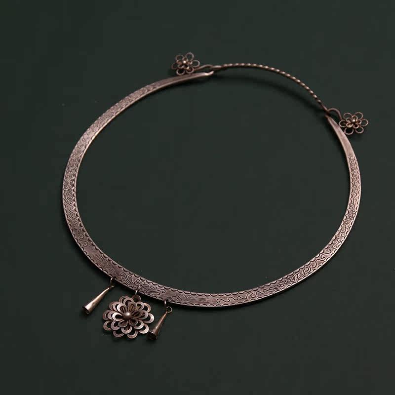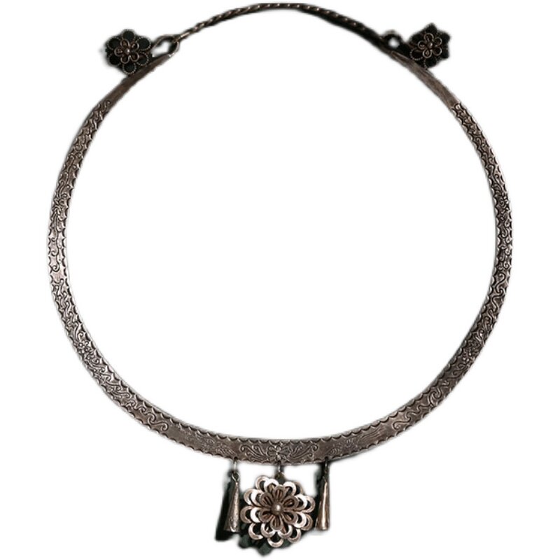 Non-genetic Chengmiao ethnic group Handmade 990 pure silver flower striped item ring