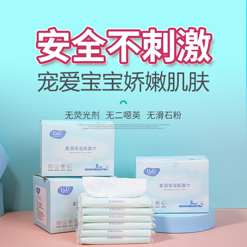 UU tissue baby moisturizing paper four boxes of tissue paper affordable household toddler tissue 32 packs hoarding family wholesale