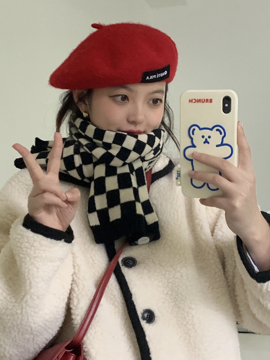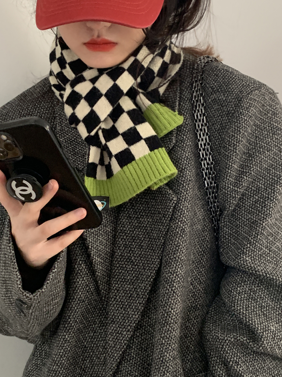 Cailin Kelin small crowdboard plaid knit wool line scarf autumn winter black and white Gprint Korean version Student scarf