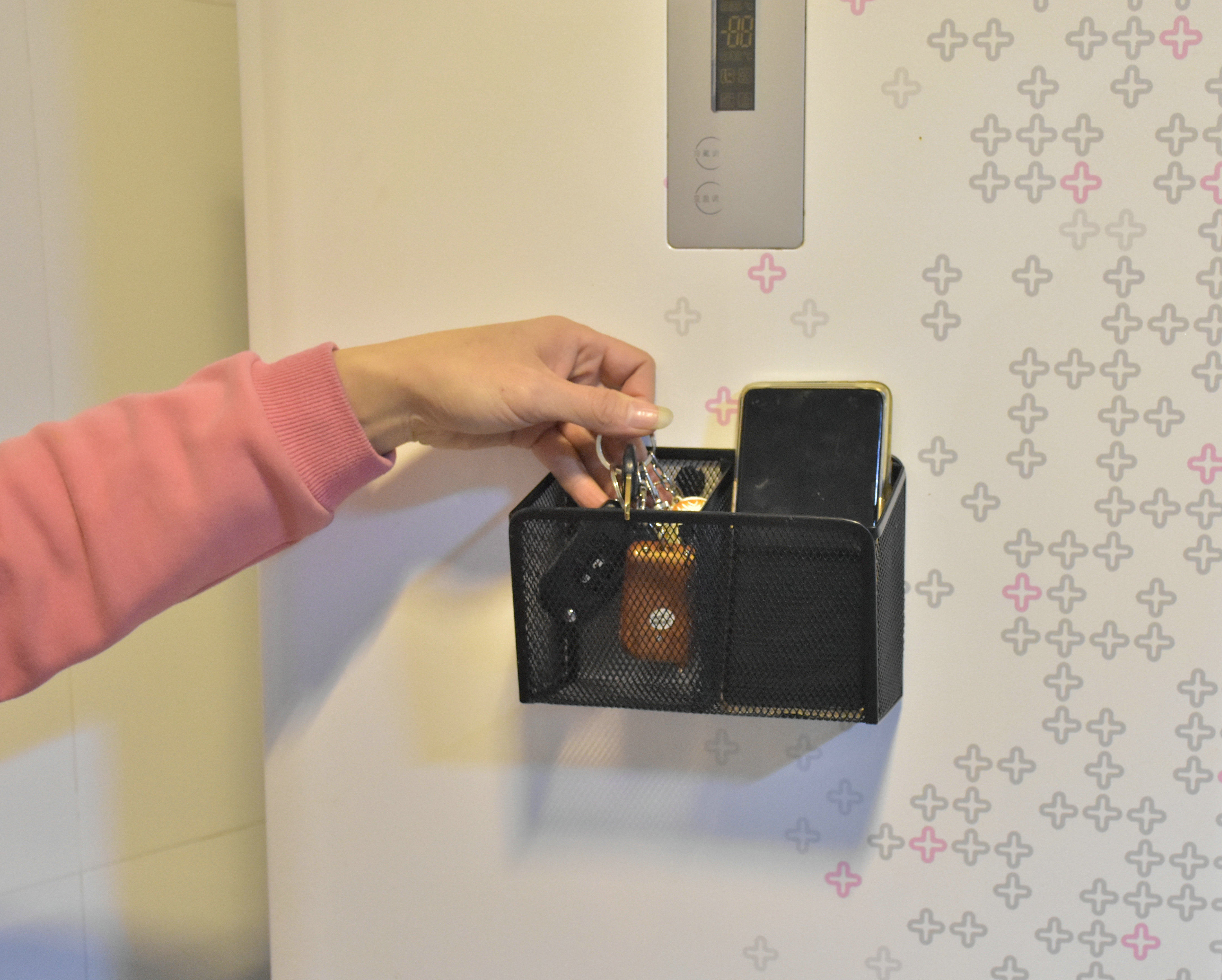 Refrigerator stickers strong magnet small storage tank box high-quality home teaching black two-grid square storage can be classified metal
