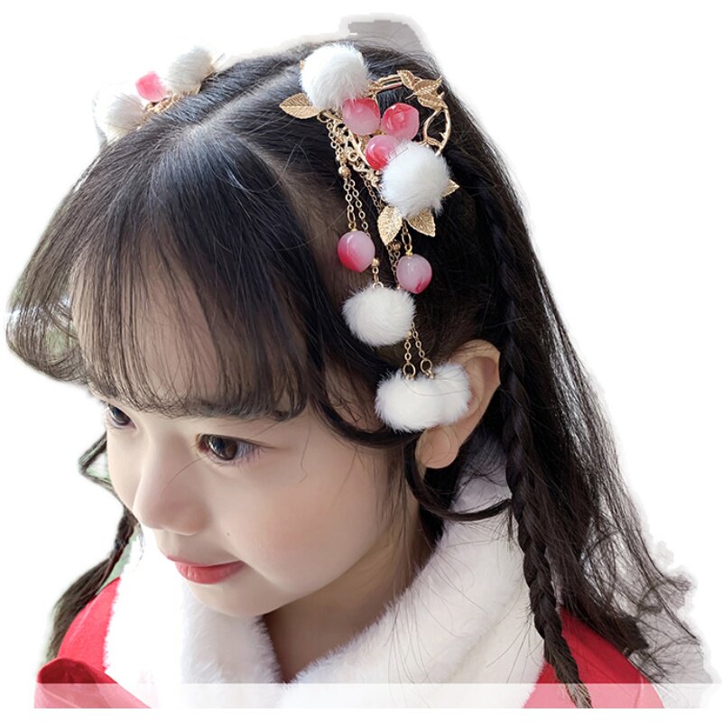 Natural Hair Accessories Girl 2021 New Gufeng Fairy Qi Little Girl Head Accessories Fluor Fur Balls Children Hair Clip
