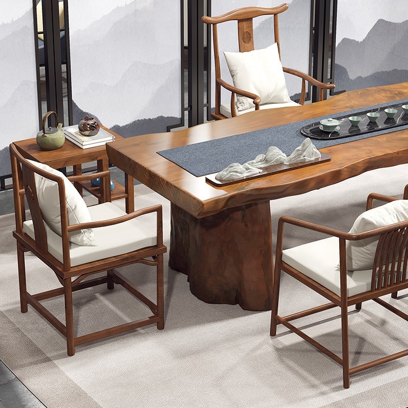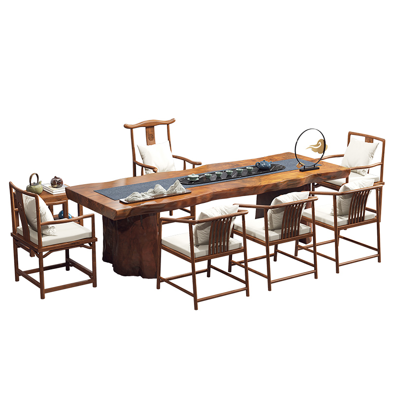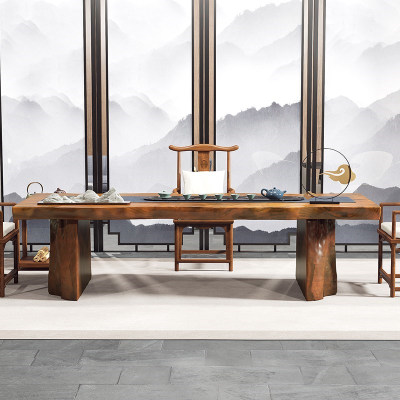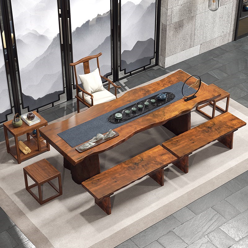 Solid wood large board table log tea table and chair combination simple modern coffee table long table boss desk tea table