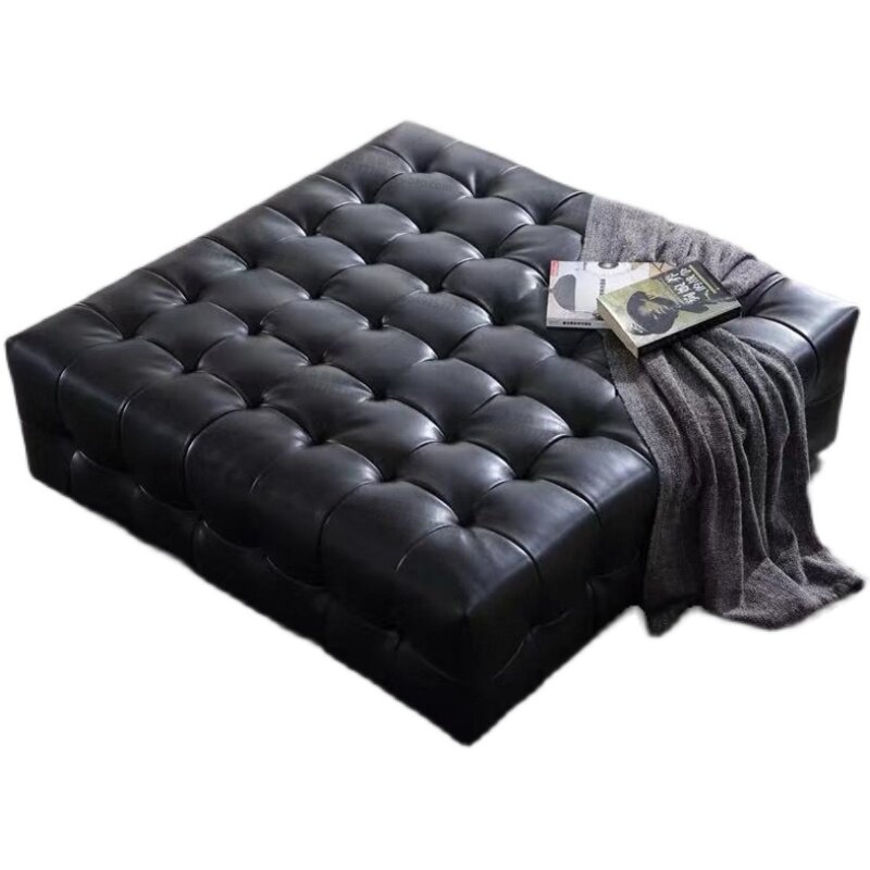 Nordic Genuine Leather Shoes Changing Bench Home Cloakroom Living-room Lounge Sofa Stool Mall Clothing Shop Square Tea Table Leather Mound