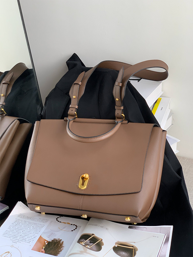 Simple and large-capacity shoulder bag portable commuter bag wide shoulder strap cowhide retro casual atmosphere flip catfish bag