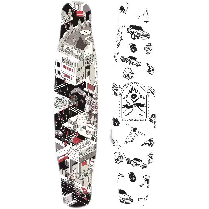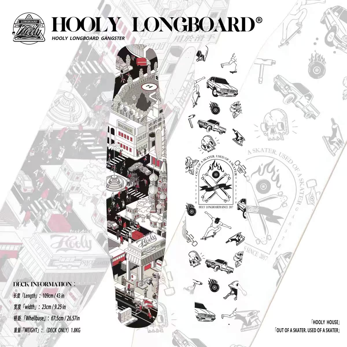 HoolyCity Family long board 43in Professional long board Adult early school flat flowers male and female skateboard Girl long board