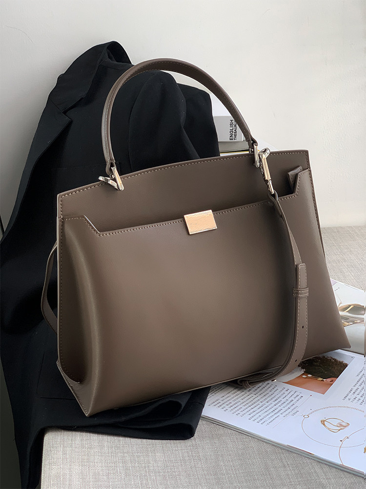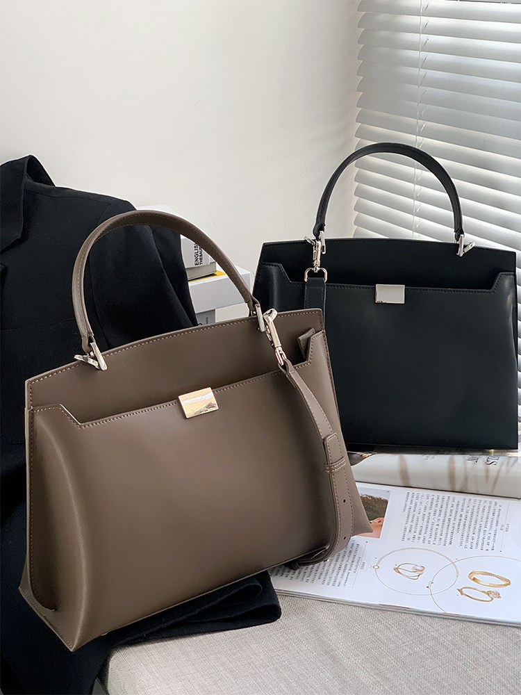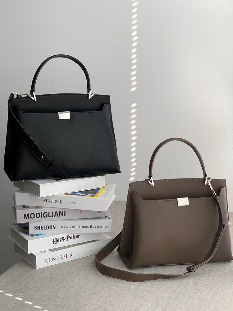 Advanced simple commuter Kelly bag cowhide one-shoulder messenger bag double-sided open handbag women's bag briefcase small square bag