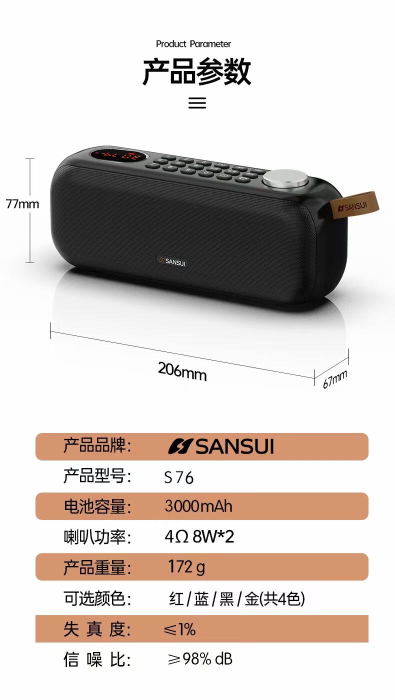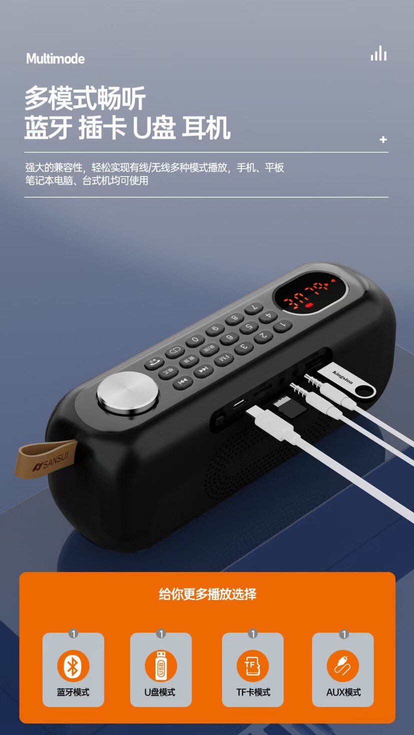 Shanshui S76 Bluetooth speaker breakpoint memory FM radio knob volume TF card u disk playback call answering