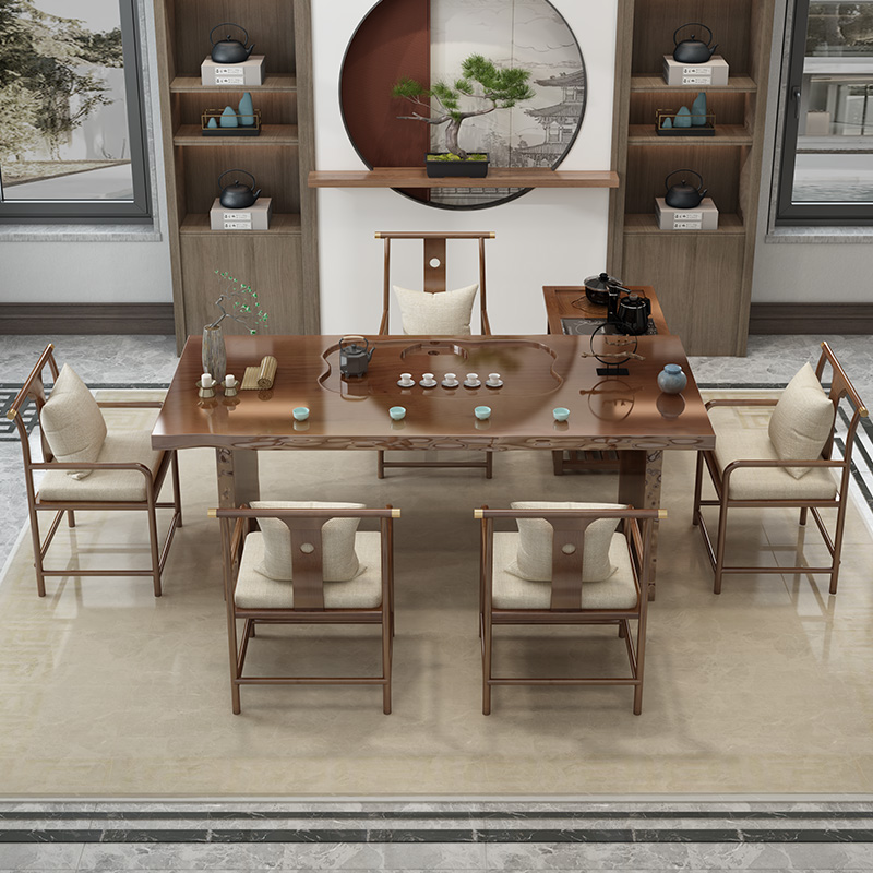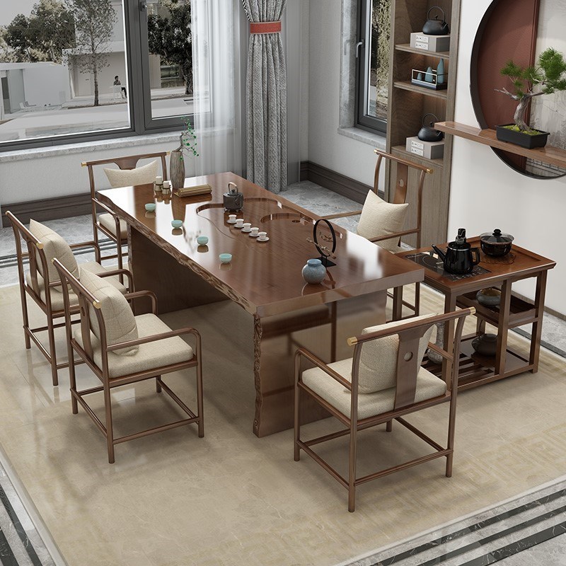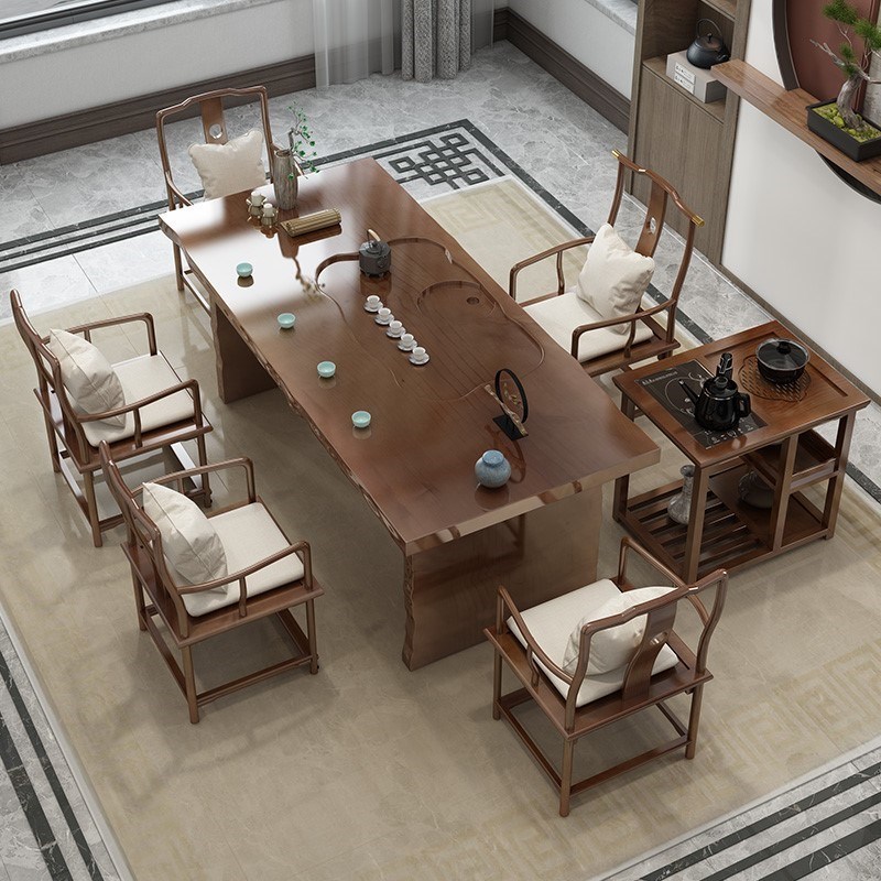 Solid wood large plate tea table log tea table tea table new Chinese simple modern Kung Fu coffee table tea table and chair combination