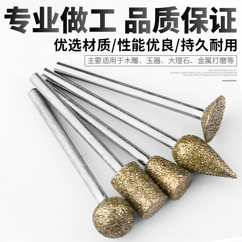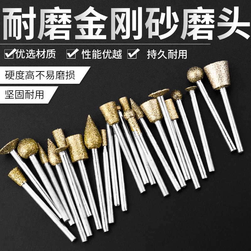 Diamond Grinding Head 3mm Shank Emery Grinding Head Jade Emerald Peeled Gold Steel Coarse Sand Grinding Head Alloy Grinding Needle