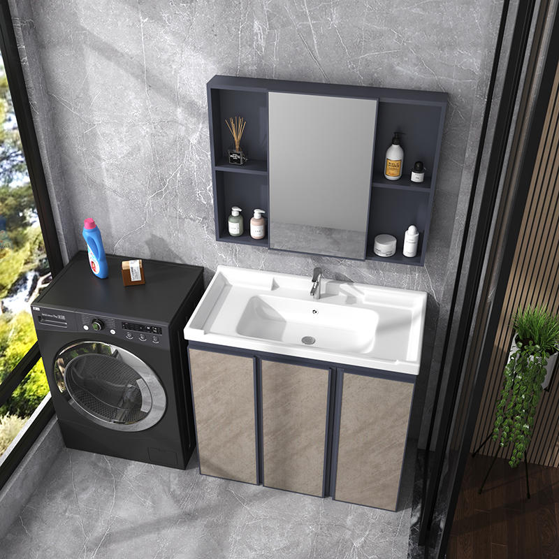 Modern minimalist washbasin cabinet space aluminum bathroom cabinet combination floor-standing ceramic washbasin toilet washstand