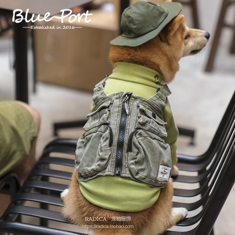 blueport spring and autumn pet clothing small and medium dog tooling heavy washing vest vest dog clothes fashion trend