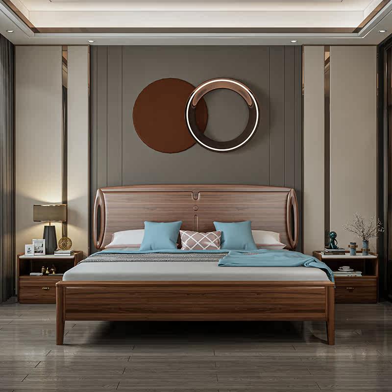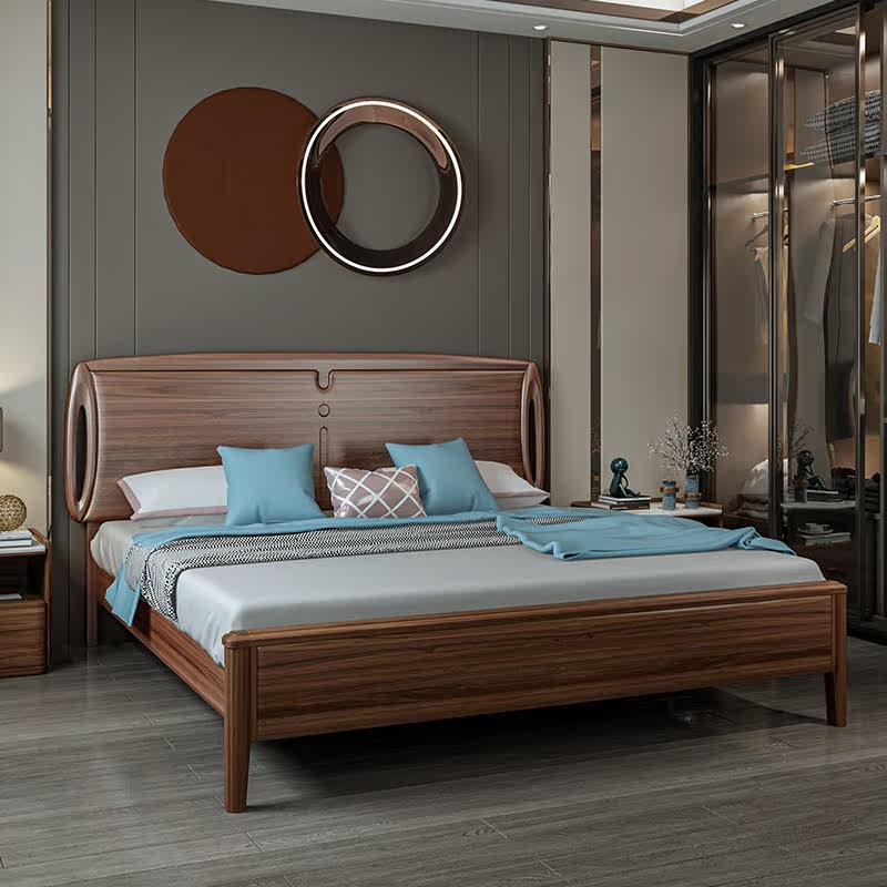 Solid wood bed New Chinese main bedroom with double bed 1 8 m Wedding bed Small family type High case containing bed Economy Type of white wax wood