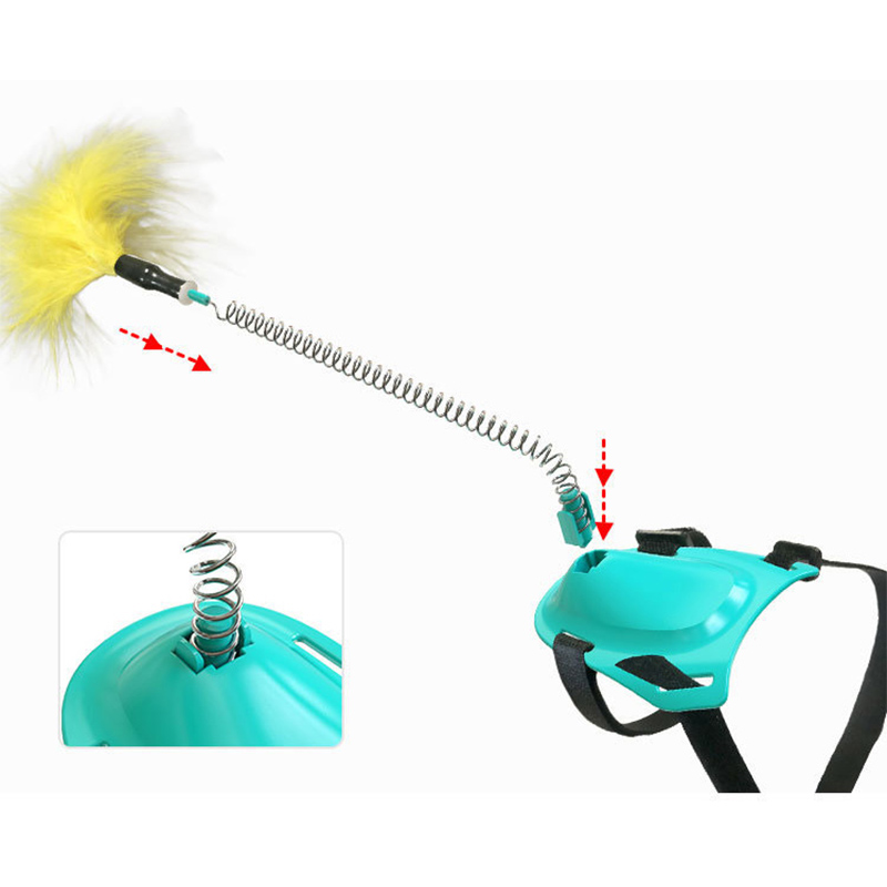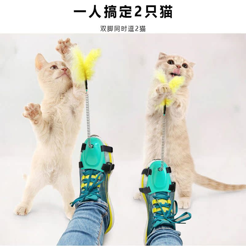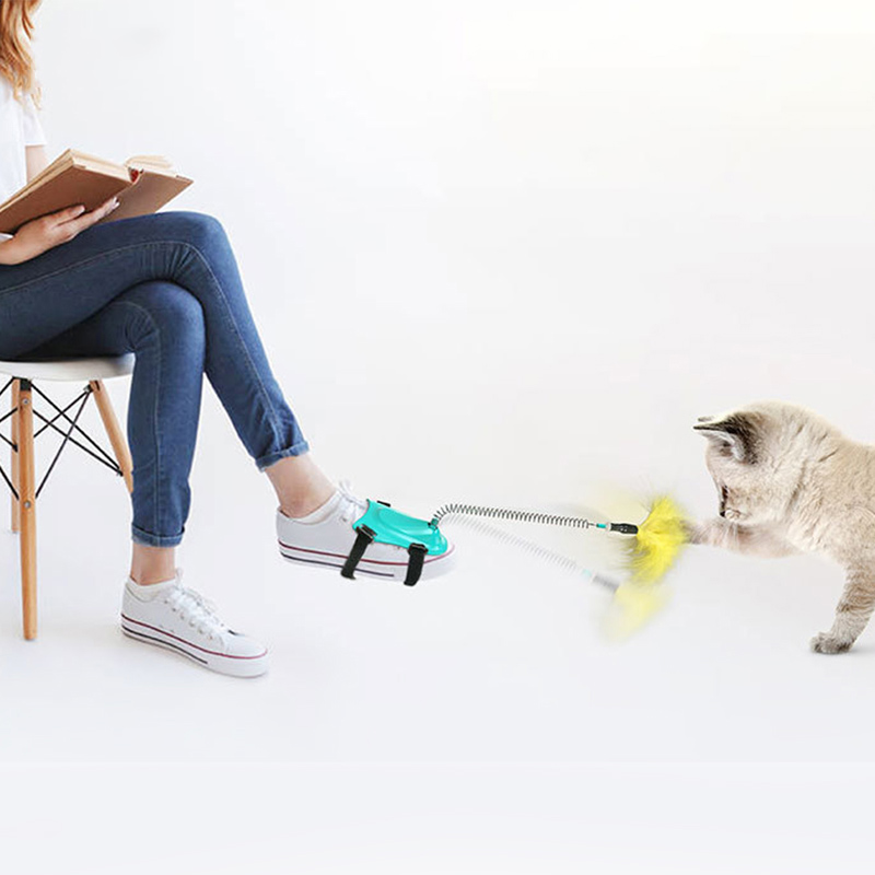 Joy-Handsome Little Feet Girl Teasing Cat Toy Spring Teasing Cat Feather Stick Kitty Interactive Toy Blue