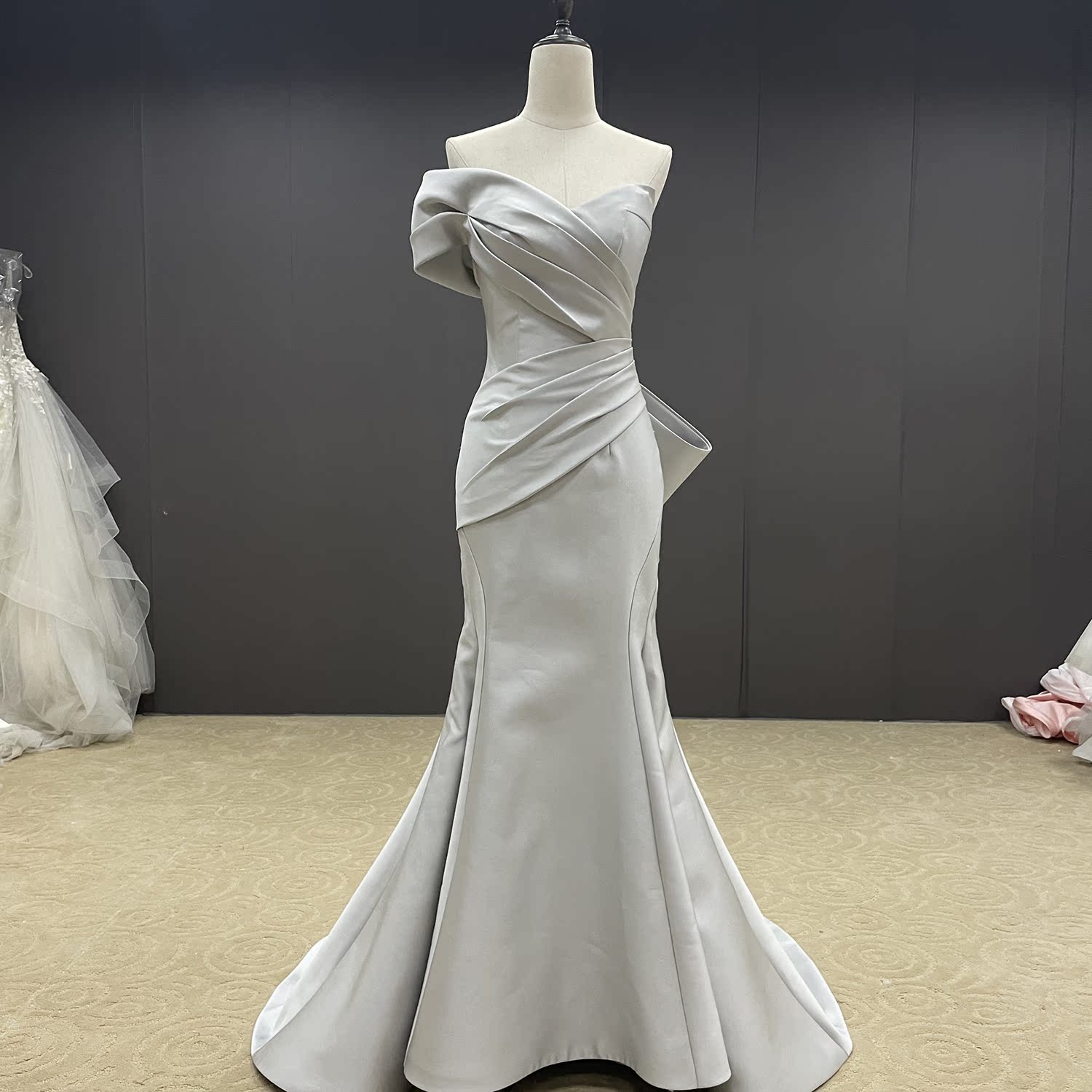 Evening gown 2022 new advanced senses bridal gown with fish tail red satin toast.