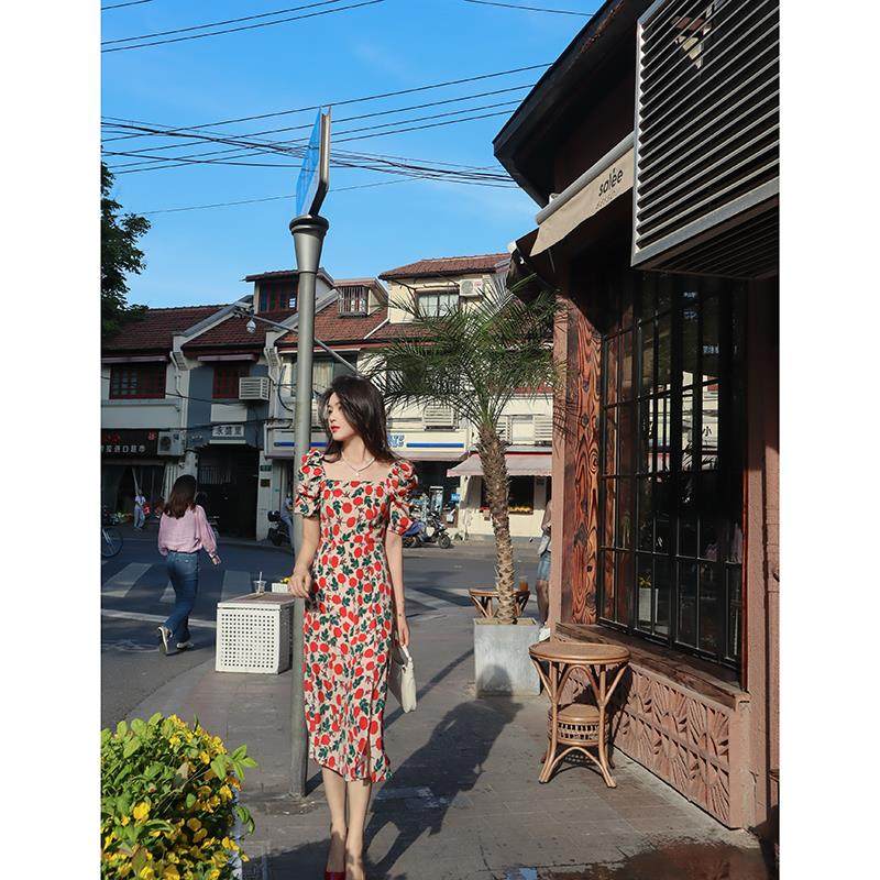 sandro queen method high-end real silk lined with foam sleeveless flower dresses in a long skirt open fork