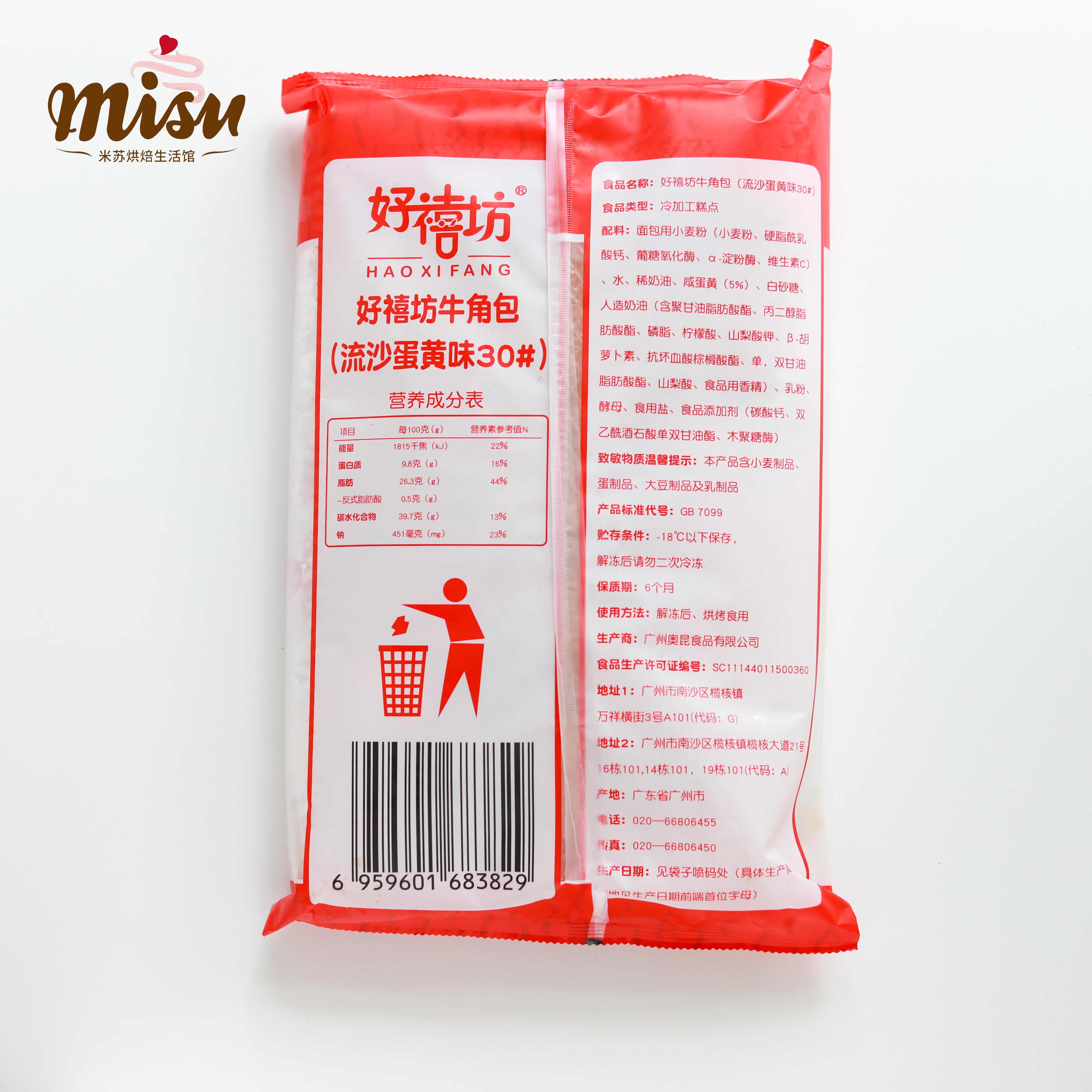Haoxifang Croissant Quicksand Egg Yolk Flavor 360g 12pcs Frozen Instant Meals