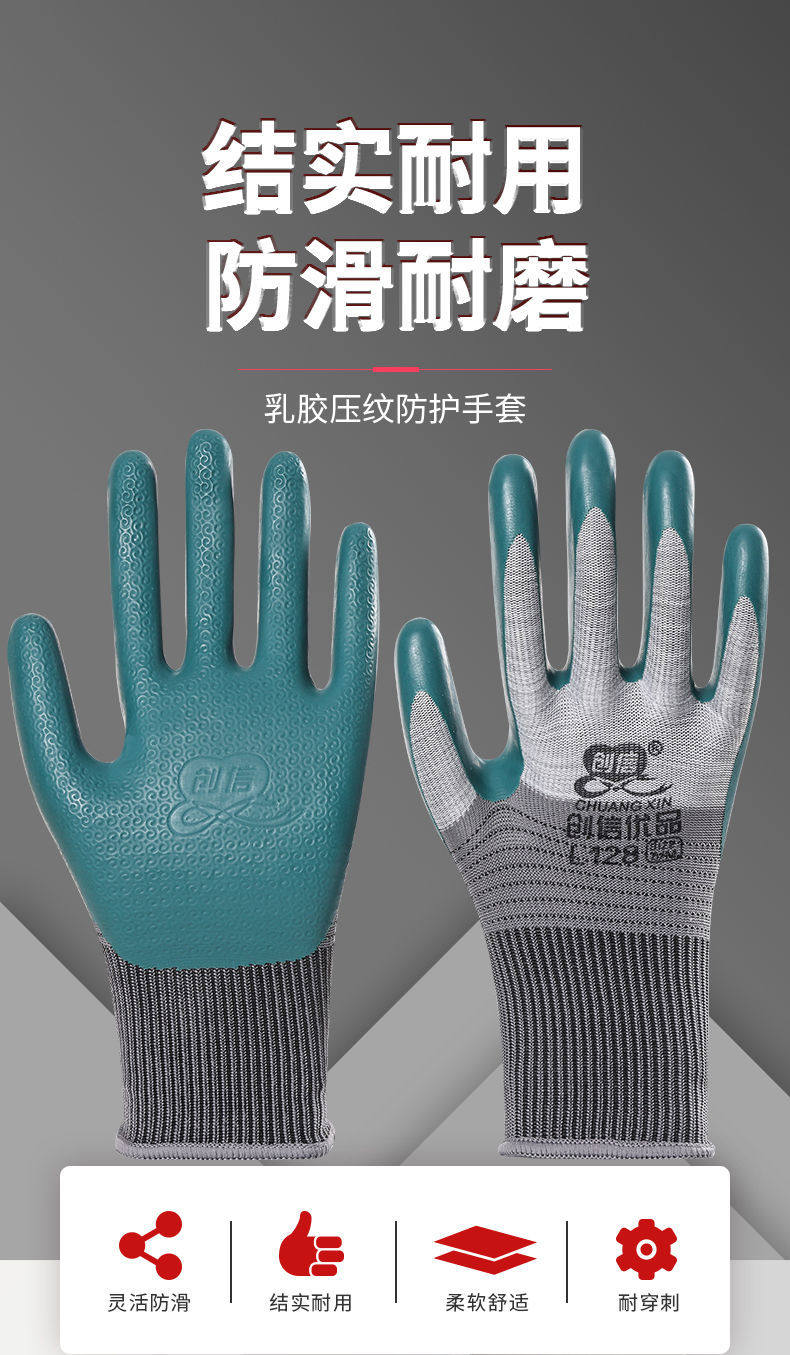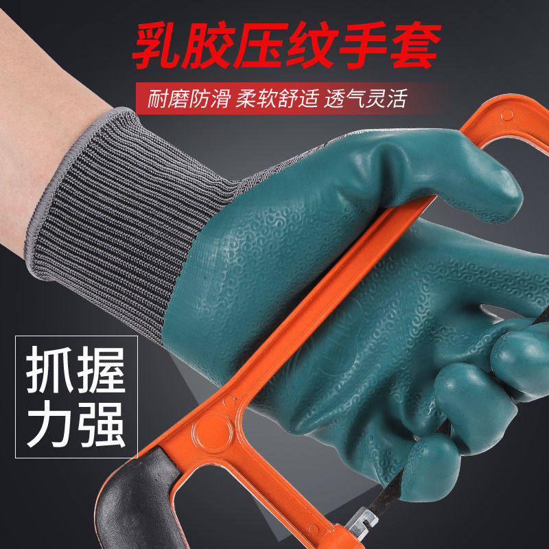 Creasing superior L128 latex embossing labor-protection wear-proof, anti-slip and breathable brick construction site protective durable gloves