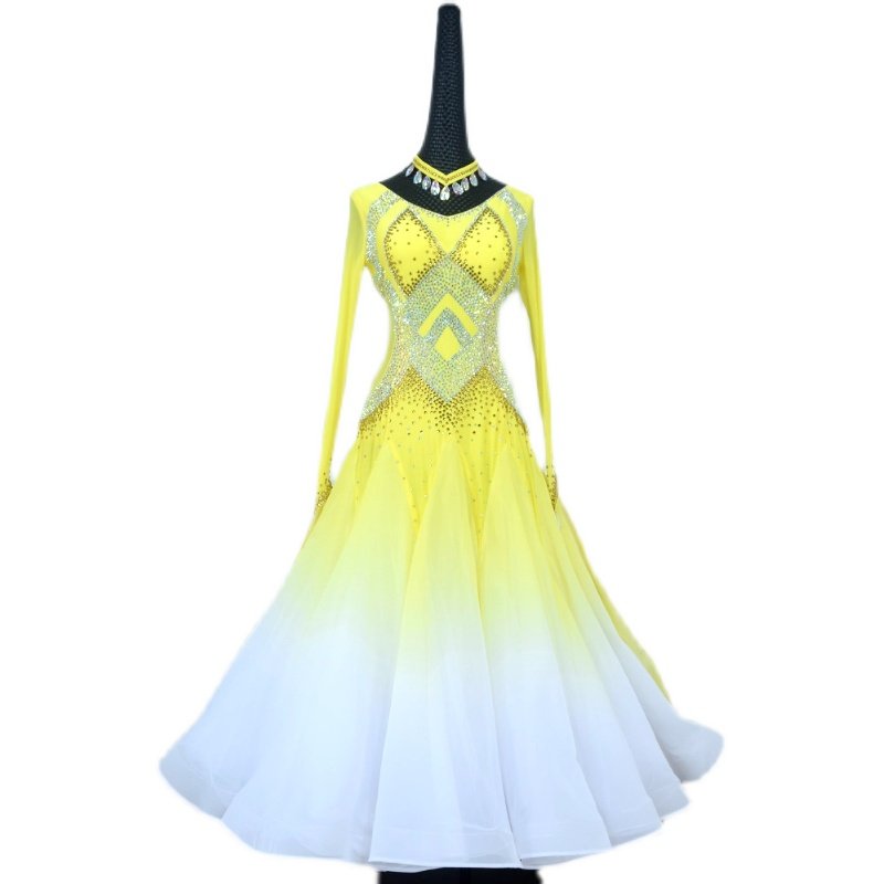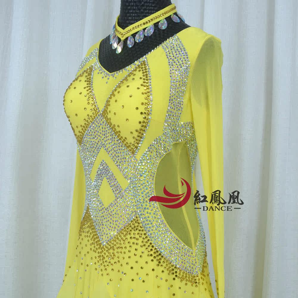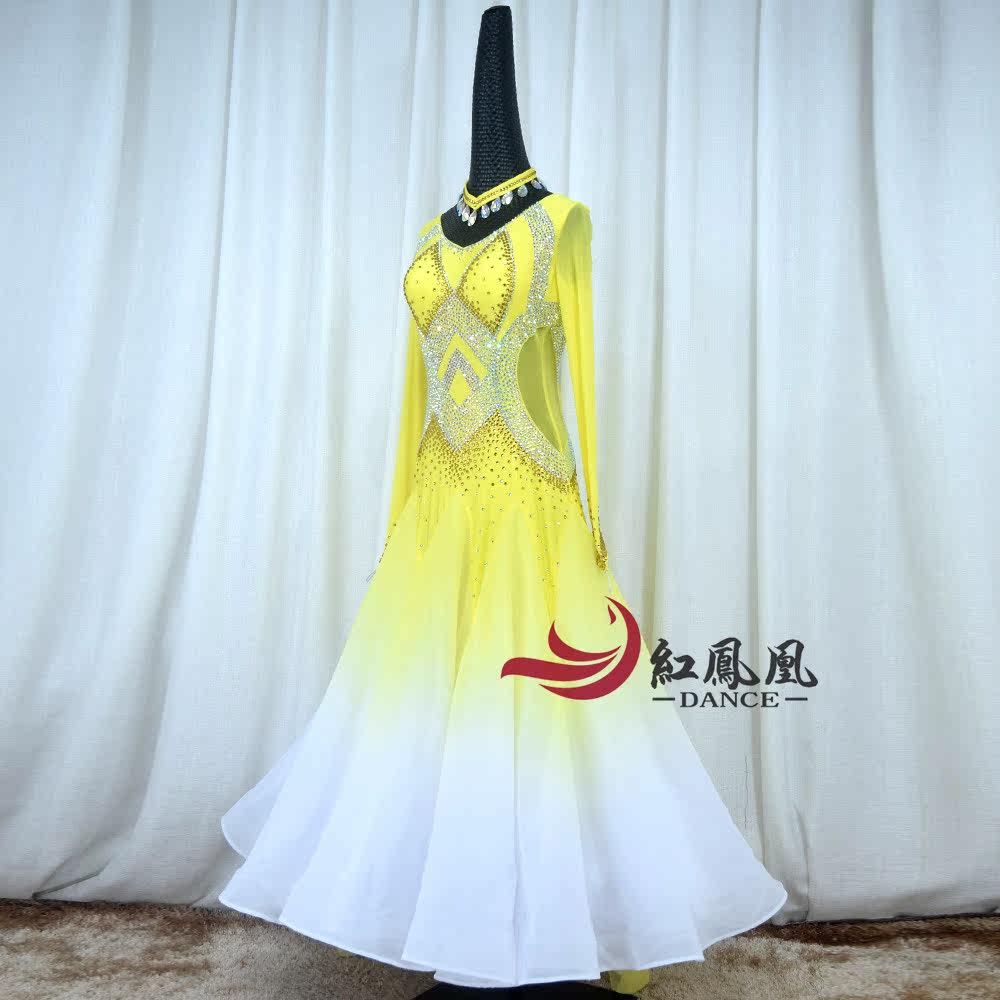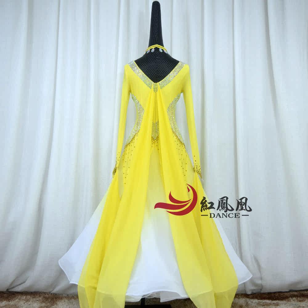 Red Phoenix Yellow White Gradual Layer Color Morden Race Dress National Waltz Square Dance Out of the BR995