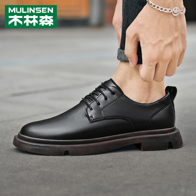 Wood Linson Comeback Old Style Bull Leather Shoes Man Winter Inglust Wind 100 Hitch Business Derby Shoes Plus Suede Warm Casual Shoes